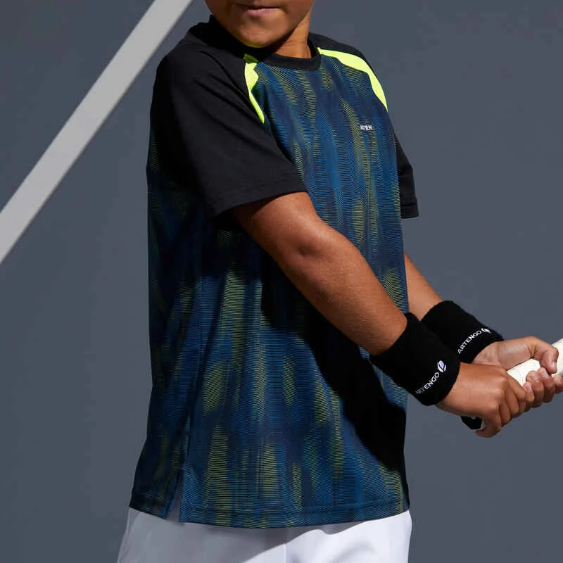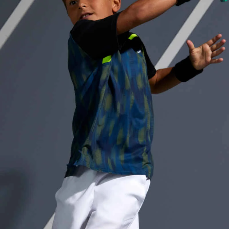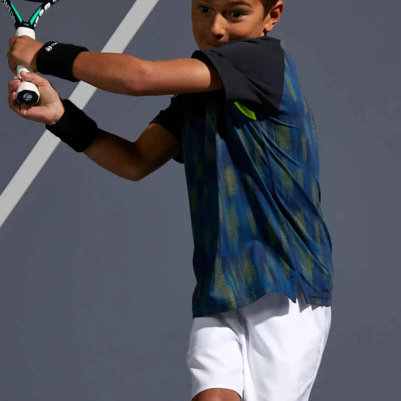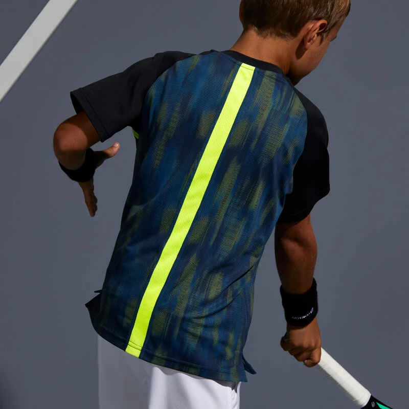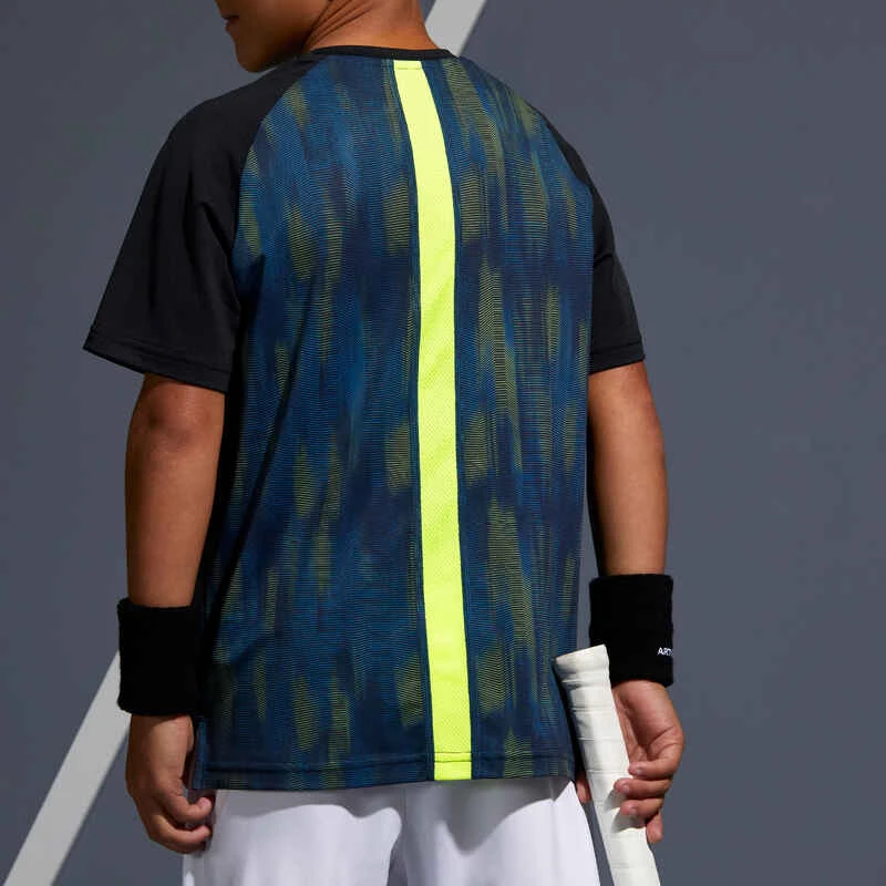 Nos concepteurs ont développé ce tee-shirt pour le jeune joueur de tennis qui pratique par temps chaud, convient également aux autres sports de raquette.