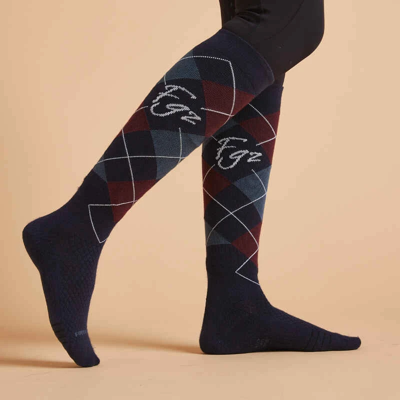Chaussettes D’équitation 500 Adulte Motifs Graph Bourgogne/noir
