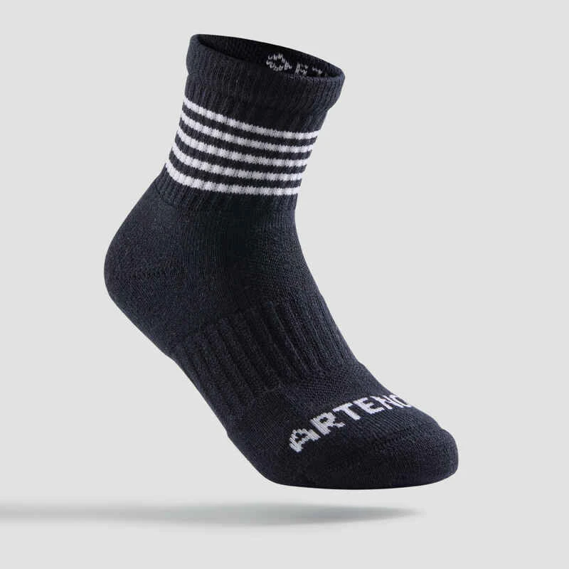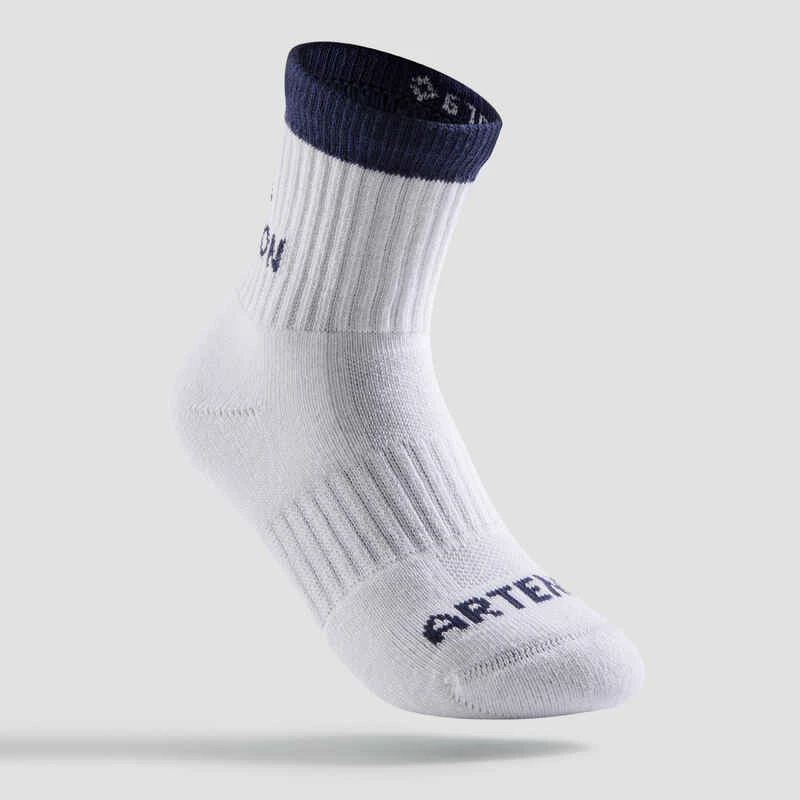 CHAUSSETTES DE SPORT ENFANT HAUTES ARTENGO RS 500 MARINE BLANC NOIR LOT DE 3