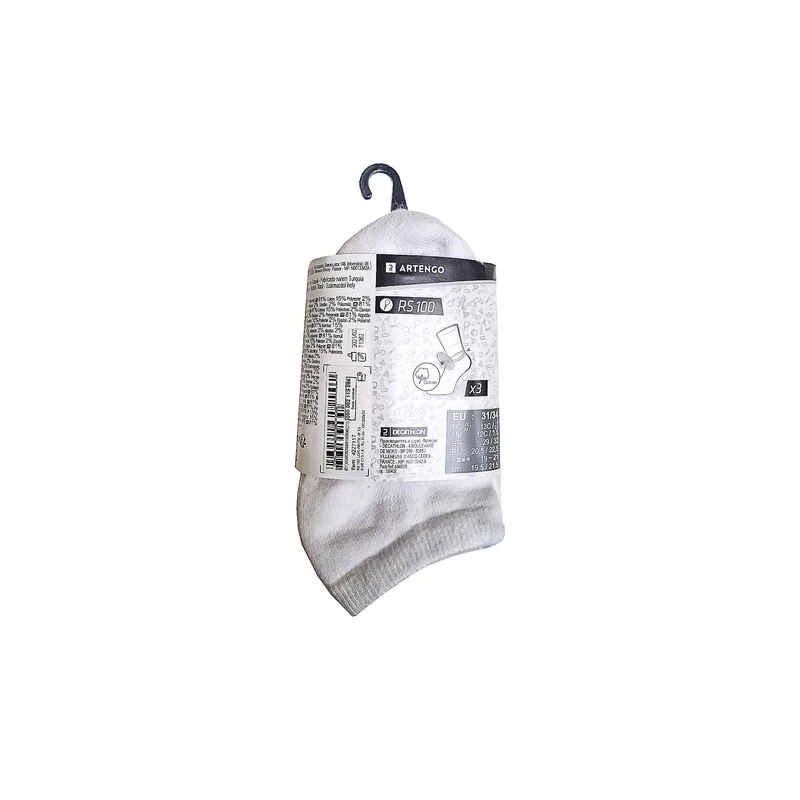 CHAUSSETTES SPORTS DE RAQUETTES BASSES ENFANT ARTENGO RS 100 BLANC LOT DE 3