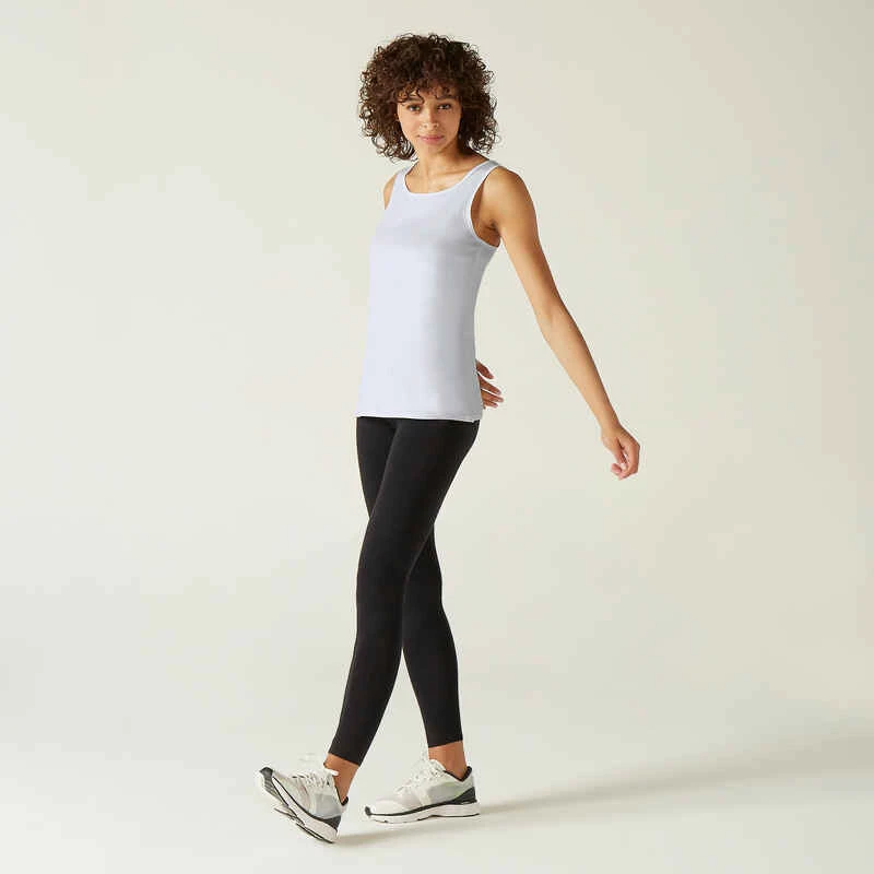 Débardeur Fitness Femme Col Rond Droit Coton – 100 Blanc Glacier