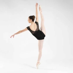 Justaucorps De Danse Classique Manches Courtes Voile Noir.