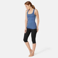 Débardeur Fitness Femme Dos En X Slim Coton – 500 Bleu D’orage
