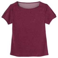 T-shirt Fitness Manches Courtes Slim Coton Extensible Col Bateau Femme Violet