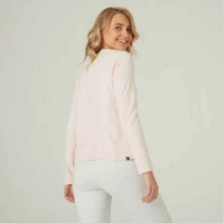 T-shirt Fitness Manches Longues Slim Coton Col Rond Femme Rose