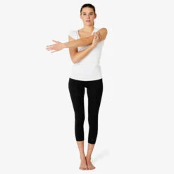 T-shirt Fitness Manches Courtes Droit Coton Extensible Col Rond Femme Noir