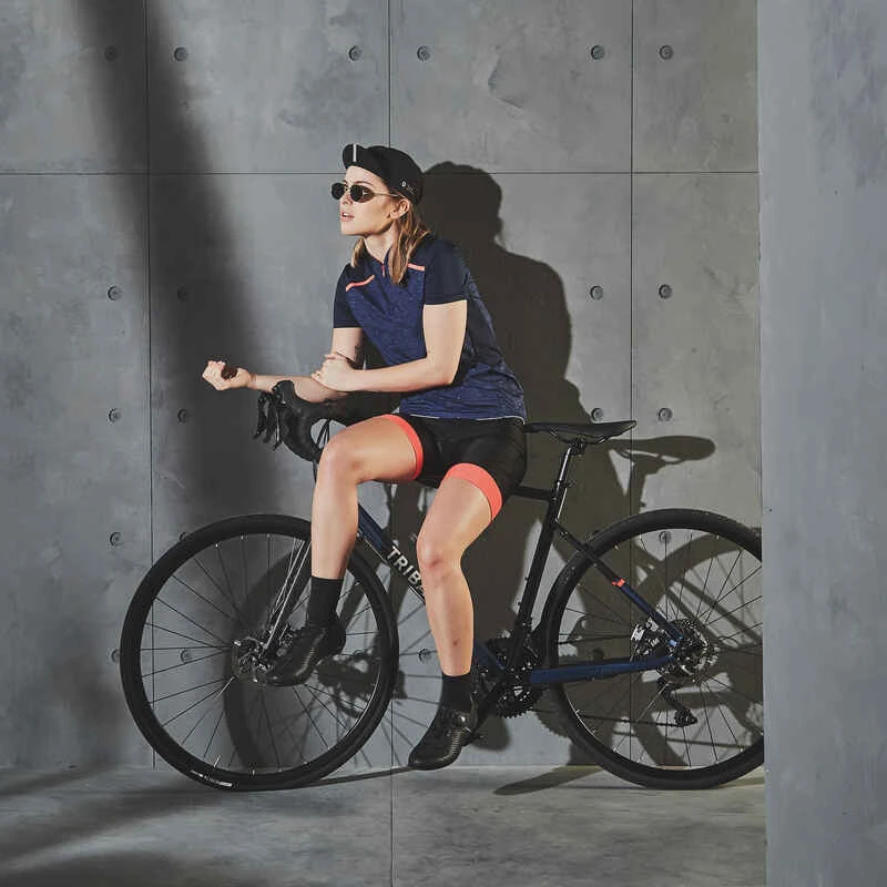 MAILLOT MANCHES COURTES VELO ROUTE FEMME TRIBAN 500 MARINE