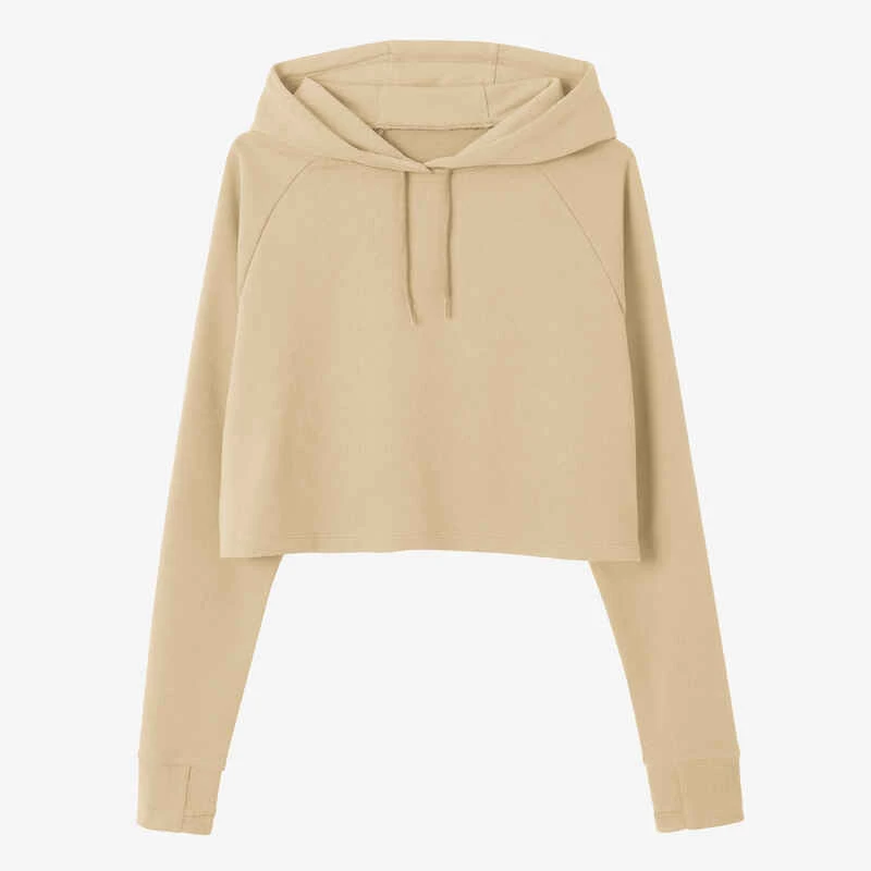 Sweat à Capuche Crop Fitness Femme – 520 Beige