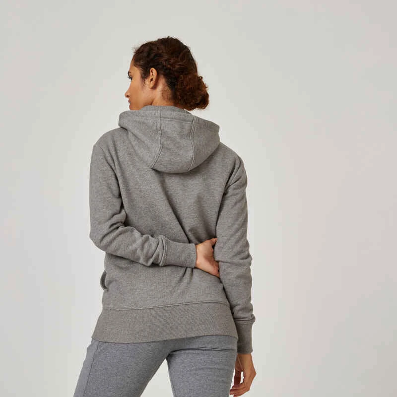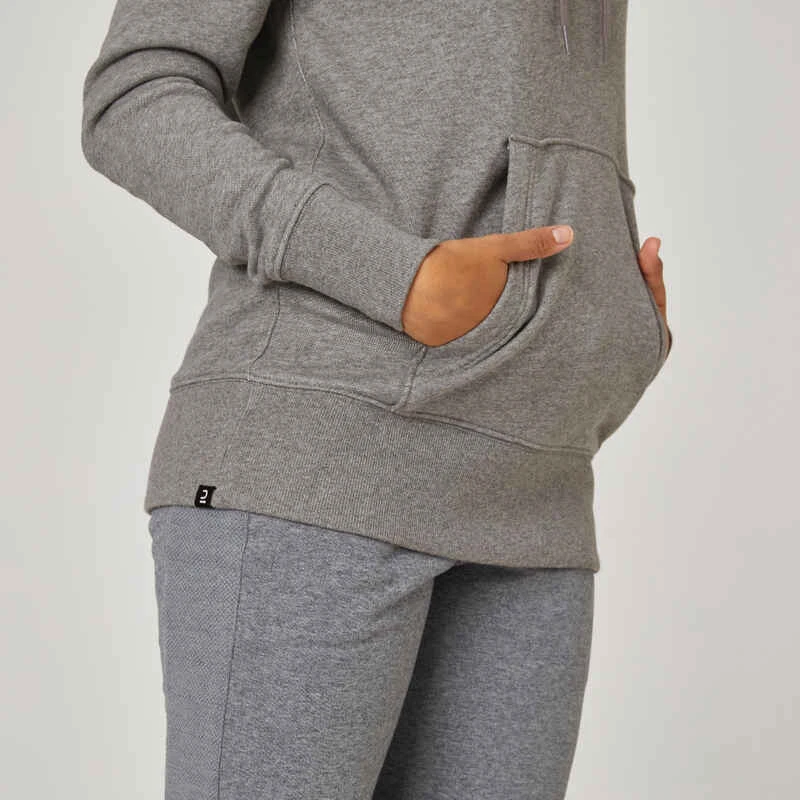 Sweat à Capuche Long Fitness Femme – 500 Essentials Gris