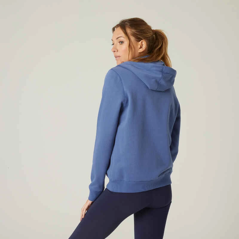 Sweat Zippé à Capuche Fitness Femme – 500 Bleu D’orage