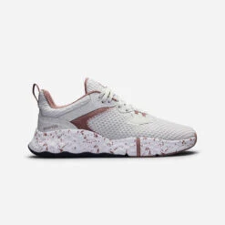 T-shirt Fitness Manches Courtes Droit Coton Col Rond Femme Gris