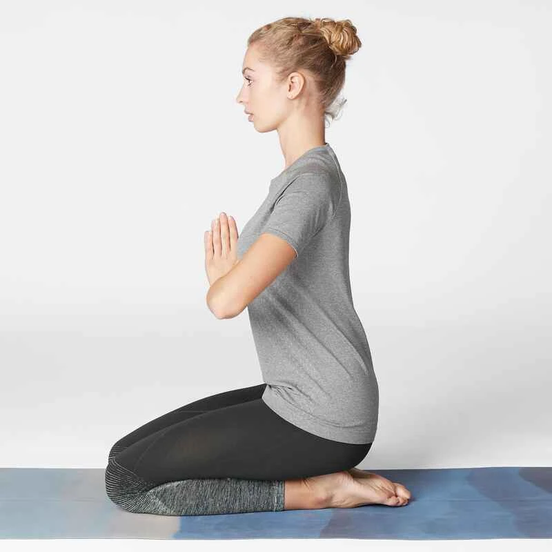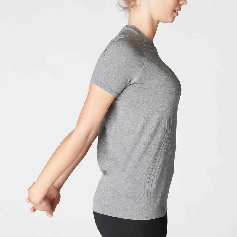 T-SHIRT YOGA DYNAMIQUE FEMME SANS COUTURES GRIS CHINE
