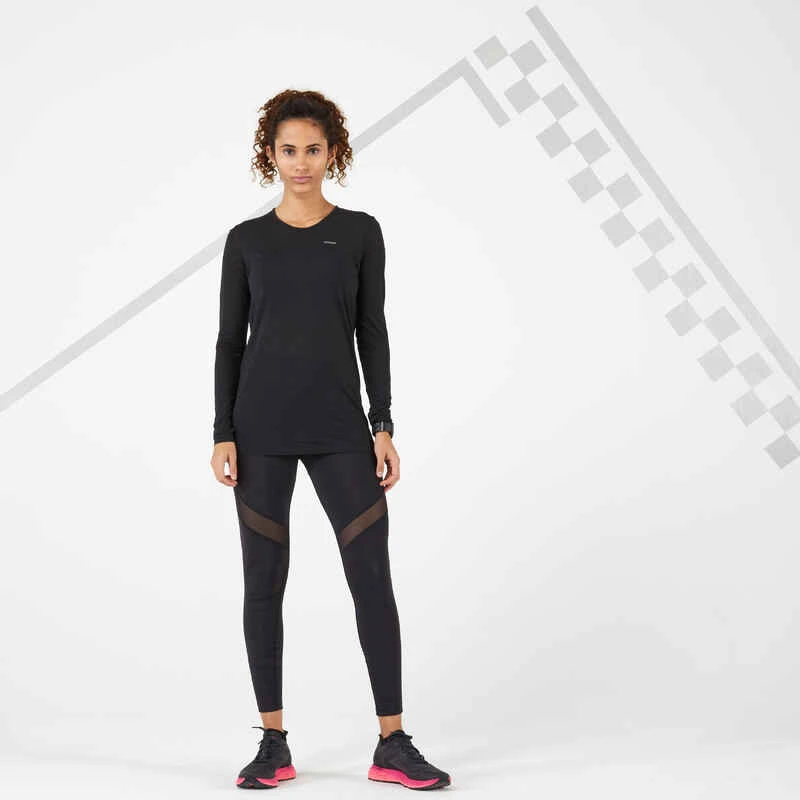 TEE SHIRT RUNNING MANCHES LONGUES FEMME RESPIRANT KIPRUN CARE NOIR